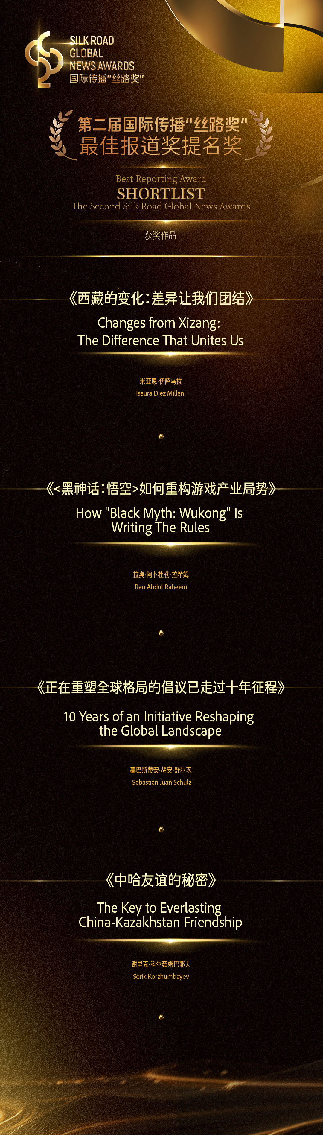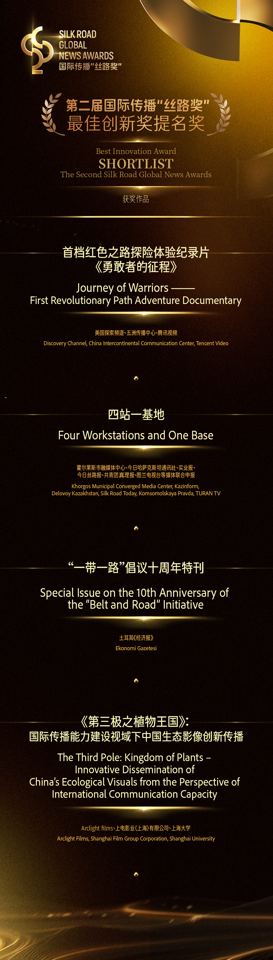 Winners and Shortlists of the Second Silk Road Global News Awards