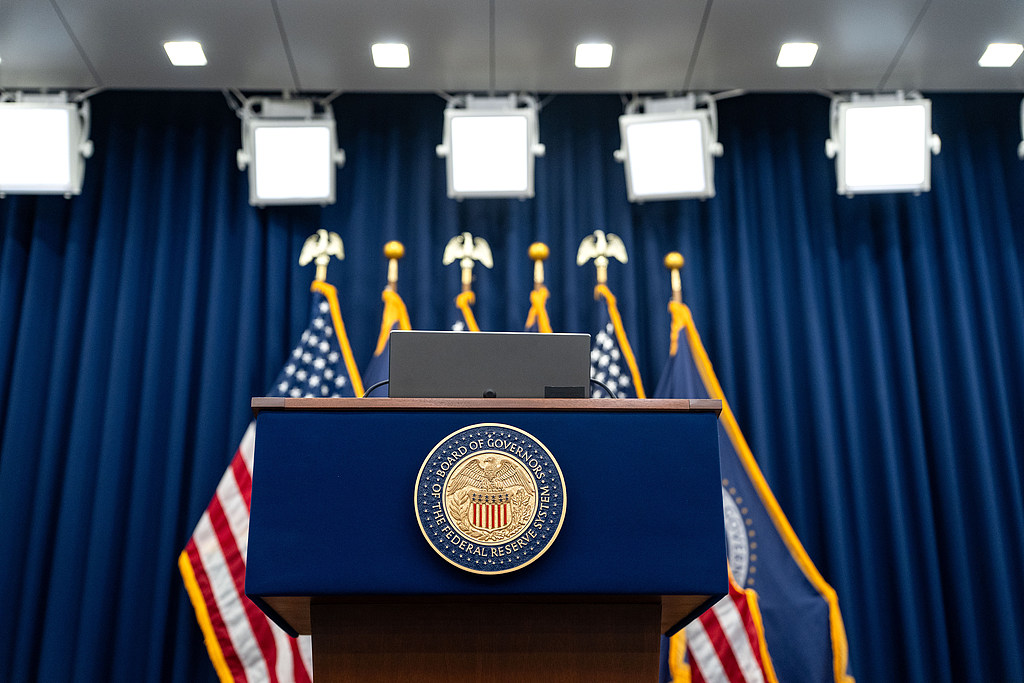 The seal of the Board of Governors of the Federal Reserve System on a podium ahead of a news conference following a Federal Open Market Committee meeting in Washington, DC, US, January 28, 2026. (Photo: VCG)