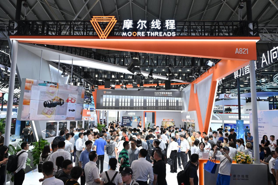 This undated photo shows the Moore Threads booth at the World Artificial Intelligence Conference in Shanghai on July 29, 2025. (File photo: Xinhua)