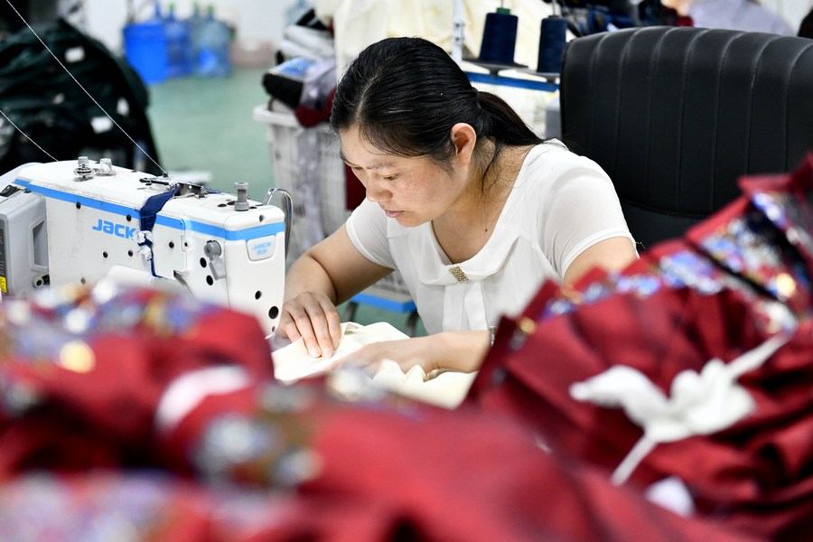 A staff member works at a Hanfu factory in Caoxian, east China's Shandong Province, July 6, 2023. (File photo: Xinhua)