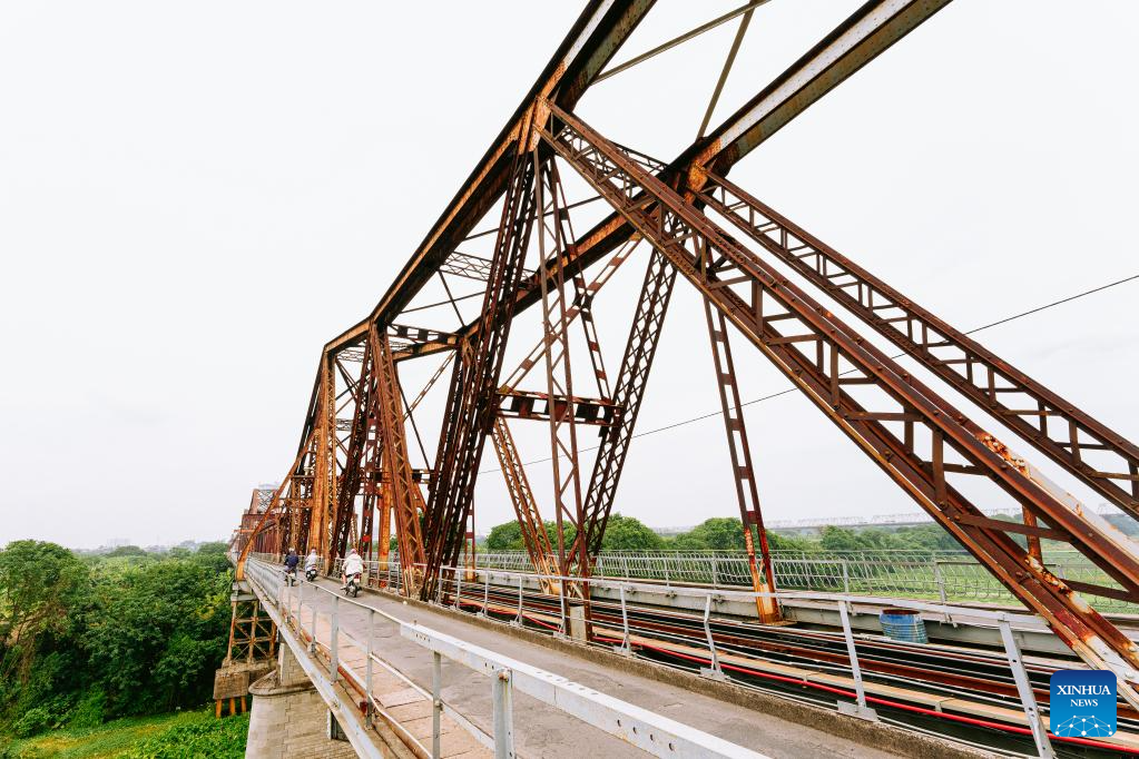 This photo taken on June 22, 2023 shows a view of Long Bien bridge, a historic cantilever bridge across the Red River, in Hanoi, Vietnam. (Photo: Xinhua)