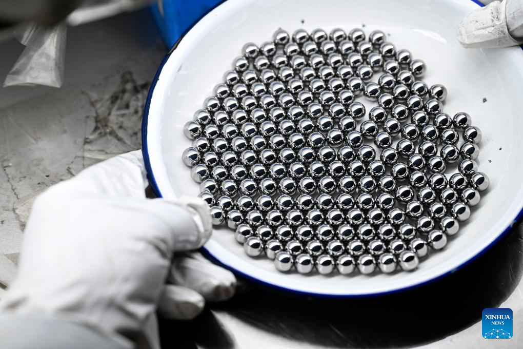 A staff member conducts sampling inspection to the bearing steel balls at an enterprise in a bearing industrial park in Lingbi County of Suzhou, east China's Anhui Province, March 6, 2026. Lingbi County has been promoting the clustered development of the entire industrial chain of bearings in recent years, gathering here over 80 enterprises related to the bearing industry, with an annual output value exceeding 5 billion yuan (about 724.15 million U.S. dollars) in 2025. (Xinhua/Huang Bohan)