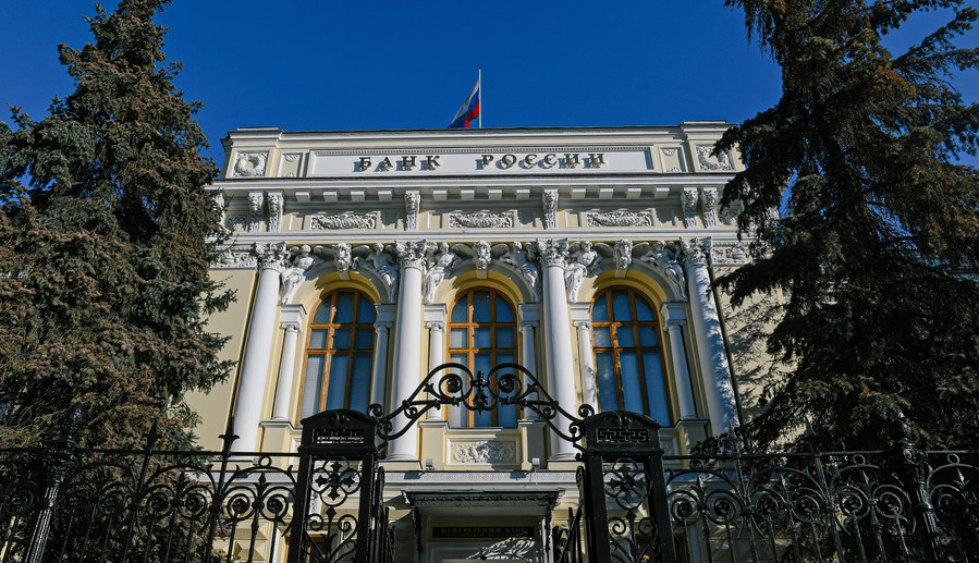 Photo taken on Feb. 25, 2022 shows the main building of the Bank of Russia in Moscow, Russia. (File photo: Xinhua)