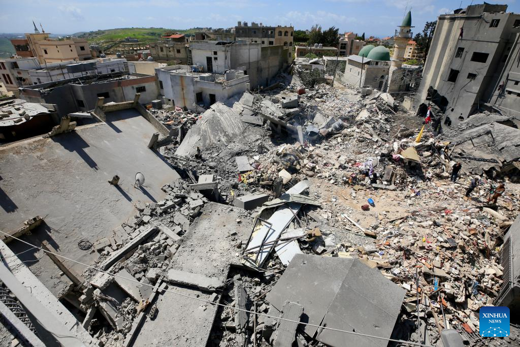 Photo taken on April 9, 2026 shows buildings destroyed by Israeli airstrikes in Zrariyeh, southern Lebanon. (Photo: Xinhua)