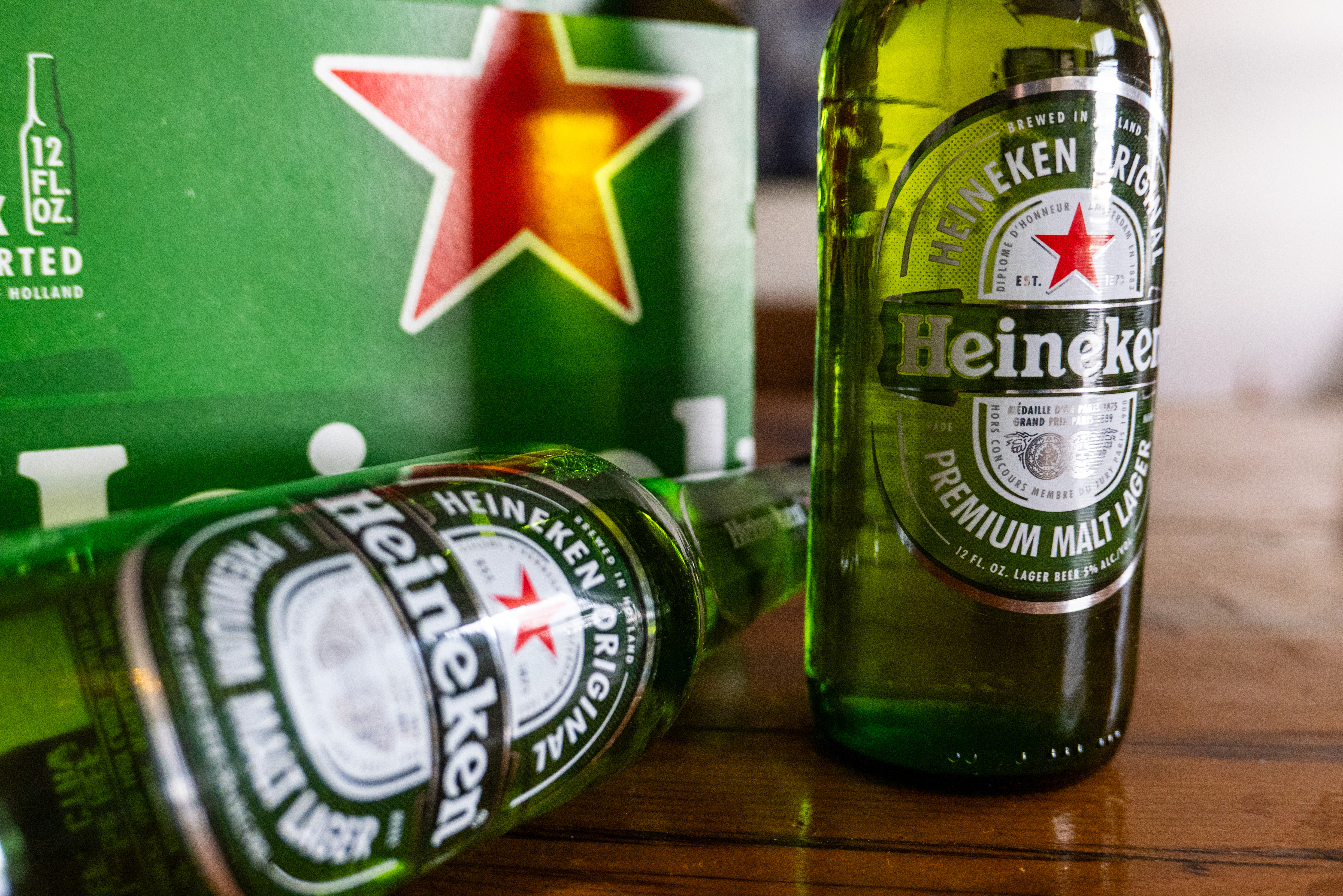 In this photo illustration, bottles of Heineken beer are seen on February 11, 2026 in New York City. (Photo: AFP)