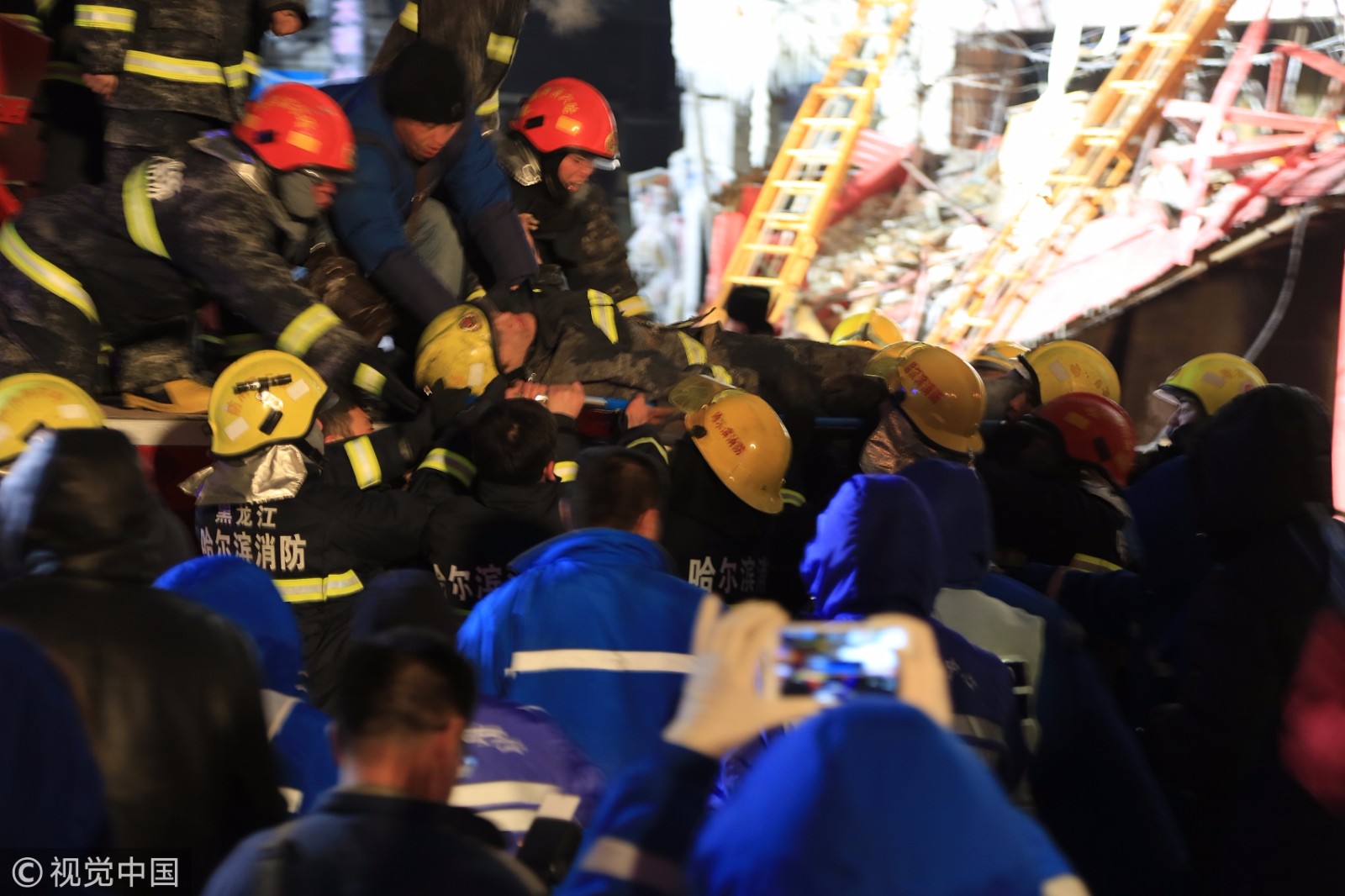 A 1,000-square-meter warehouse in Harbin catches fire on Jan. 2, 2015. When firefighters entered, a floor suddenly collapsed, which killed five firefighters and injured 14.
