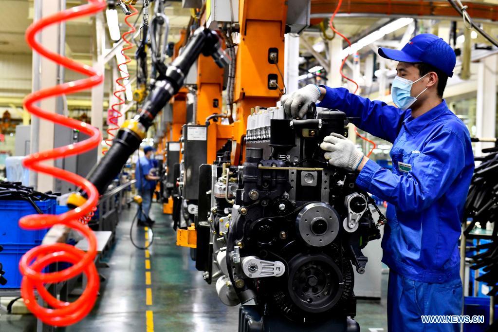 Workers assemble diesel engines at a workshop of the Weichai Group in Weifang, east China's Shandong province, April 22, 2021. (Photo: Xinhua)