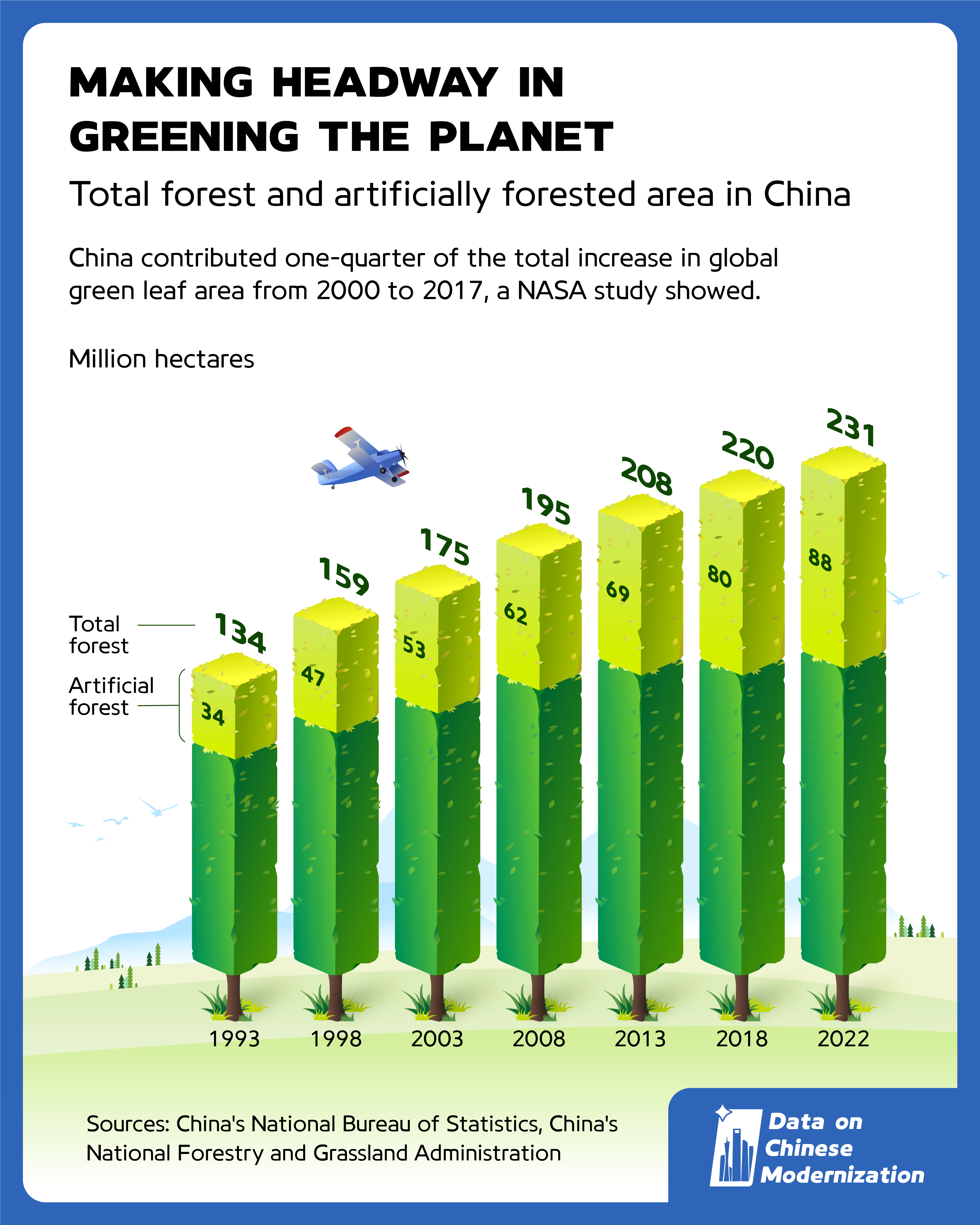 Responding to climate change, high on the global agenda, China is leading in greening of the planet.