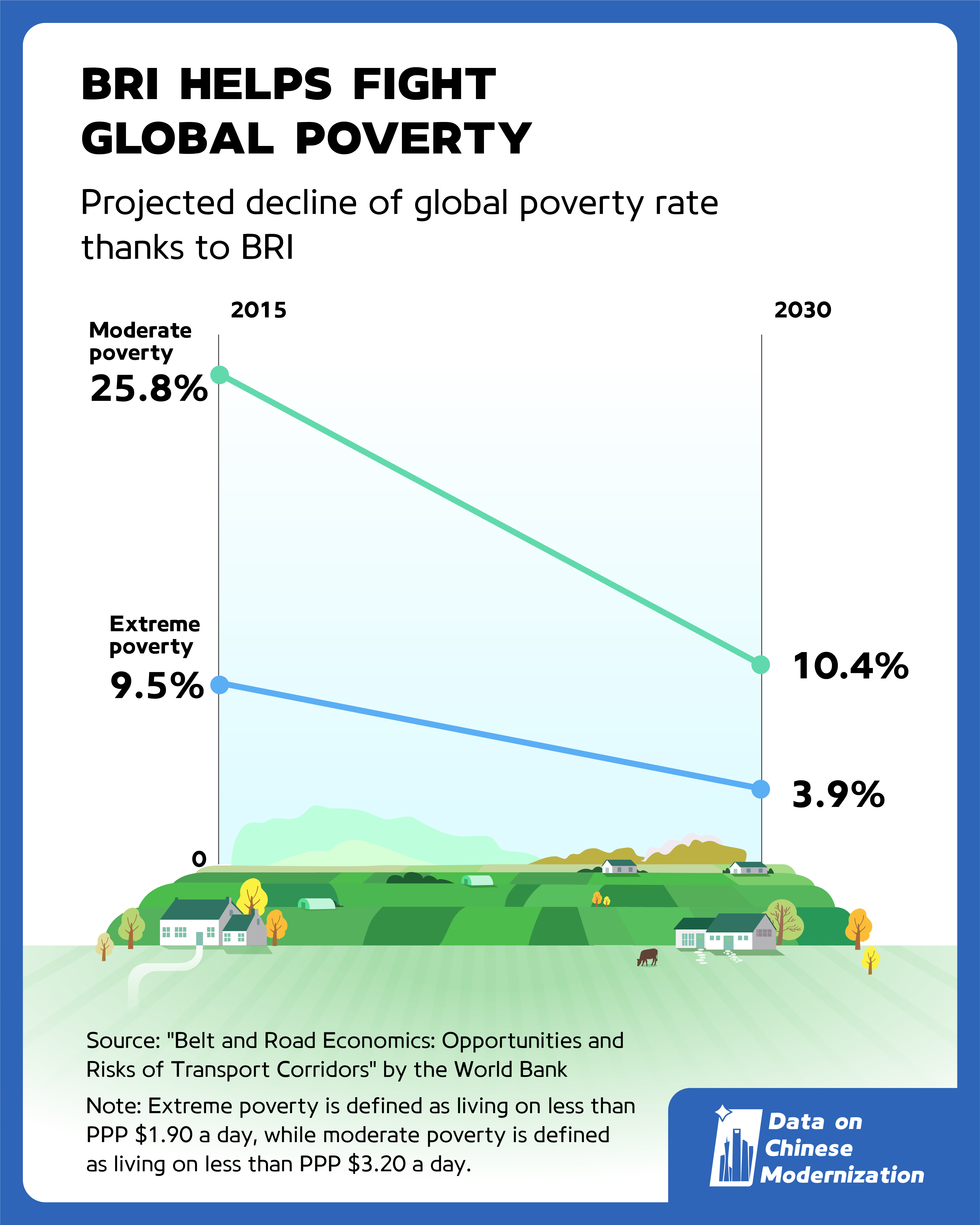 The Belt and Road Initiative (BRI) has been building a pathway to poverty alleviation through international cooperation. The World Bank has projected that the global extreme poverty rate will decline from 9.5 percent in 2015 to 3.9 percent by 2030 thanks in no small part to the BRI.
