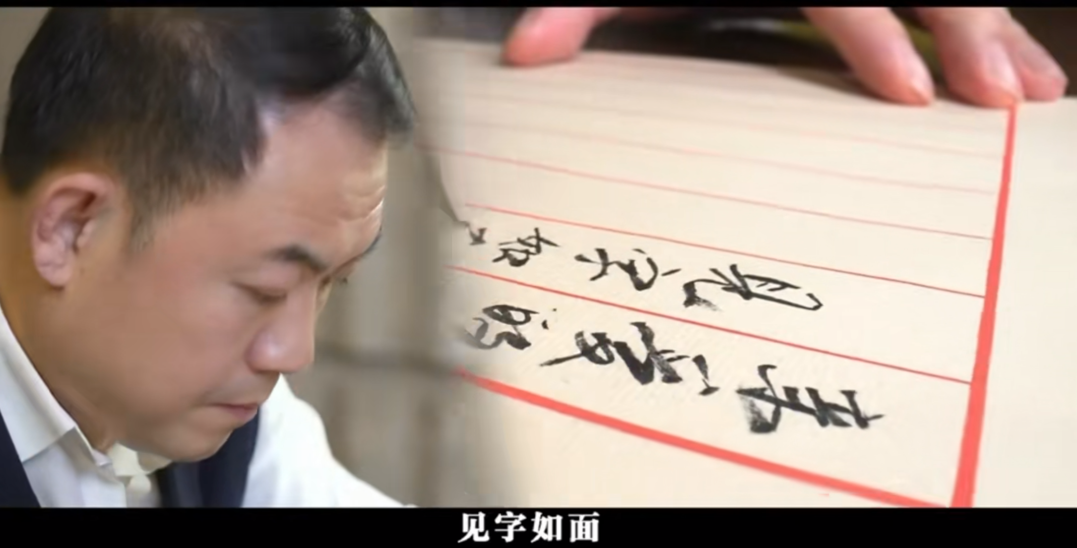 Gao Sisheng uses a handwritten calligraphy to invite visitors. (Screenshot of Douyin)