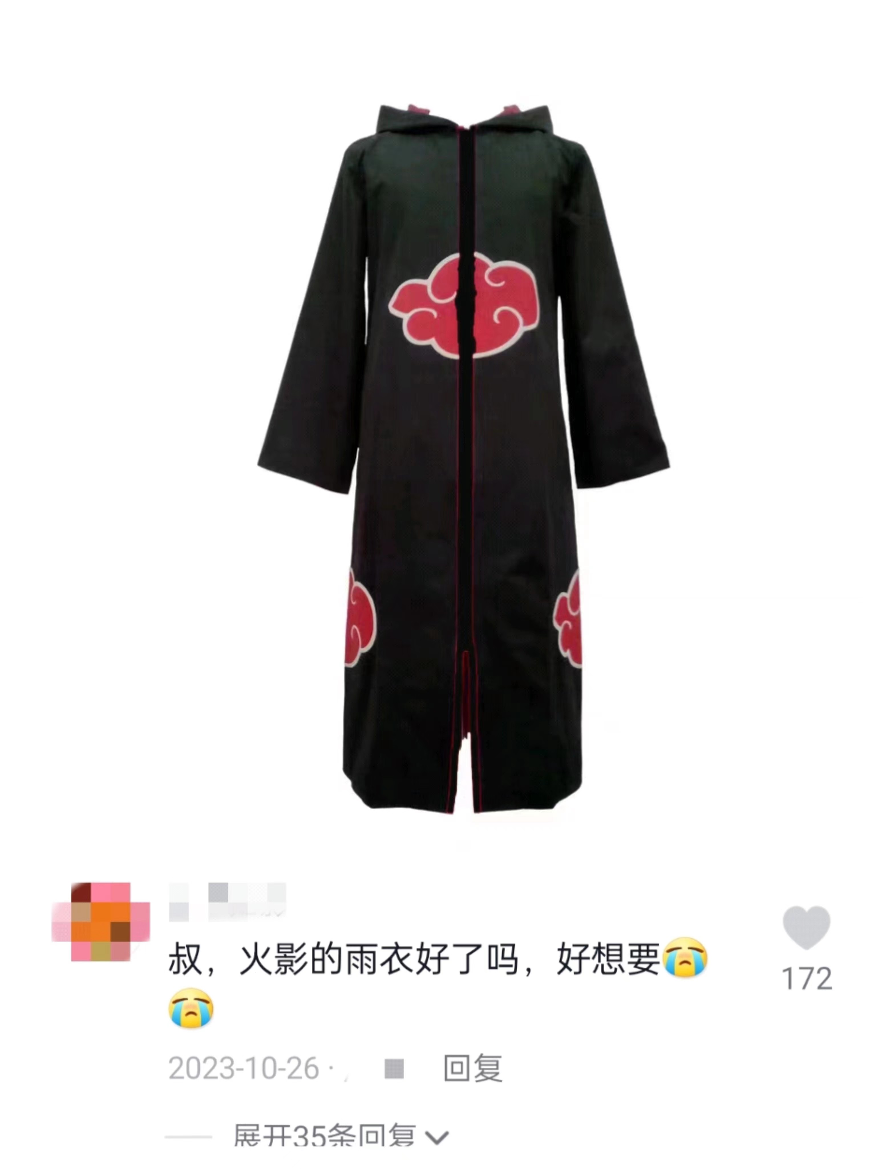 Satisfying one of his followers' wishes, Lei introduces a raincoat modeled after the manga Naruto. (Photo: Screenshot of Douyin account)