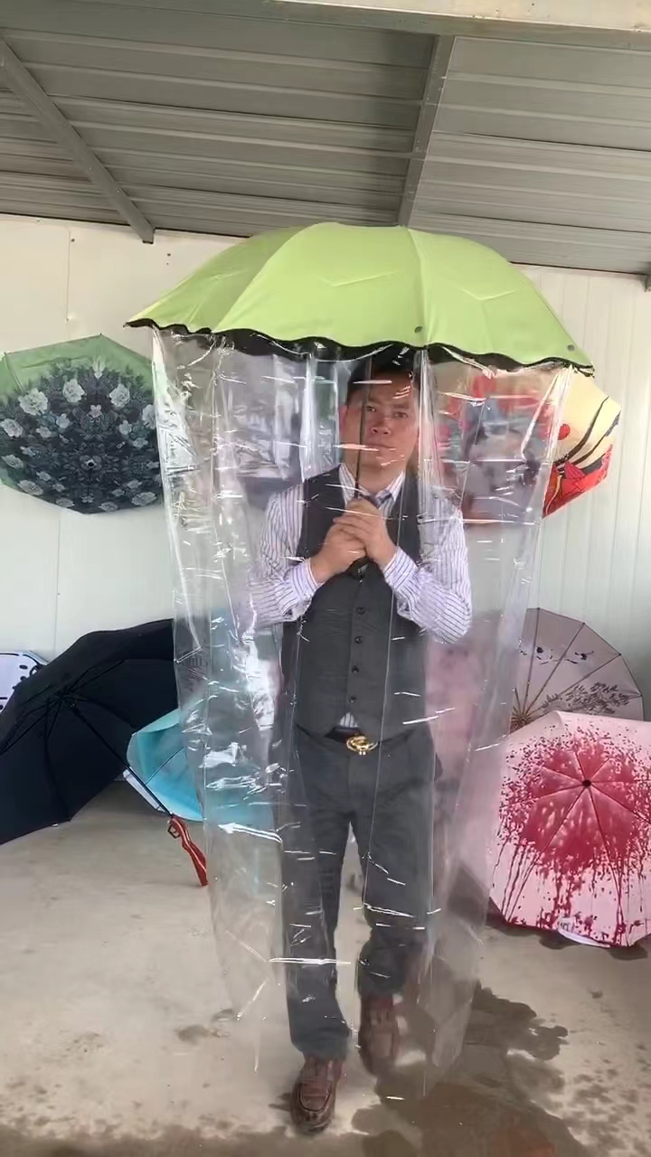 In his shop, there are shining laser-reflective umbrellas to dispel the darkness, umbrellas with floor-length plastic curtains to prevent one's clothes from getting soaked, twin umbrellas specially designed for couples and many others. All of them turn the wishes of netizens into reality and were made by the 38-year-old man in the clips, Lei Penglin, affectionately referred to as "uncle" due to his performances in the videos.