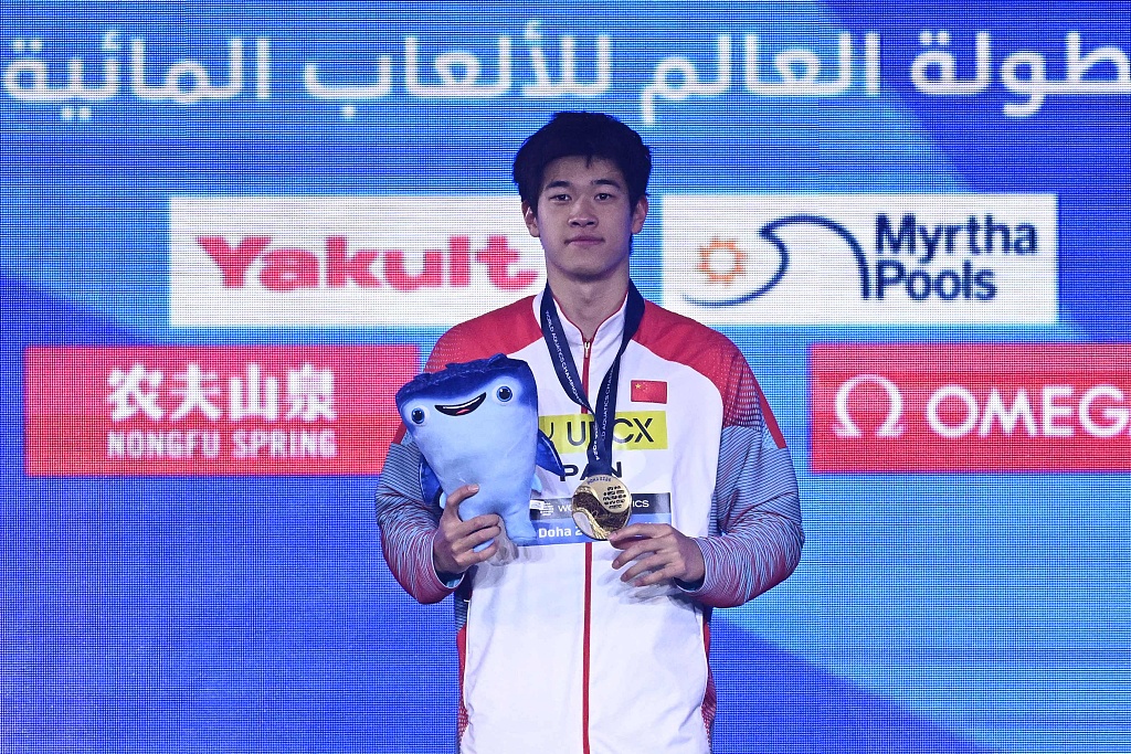 Pan Zhanle of China won the men's 100-meter freestyle gold medal at the World Aquatics Championships after finishing the final in 47.53 seconds in Doha, Qatar, on Thursday.