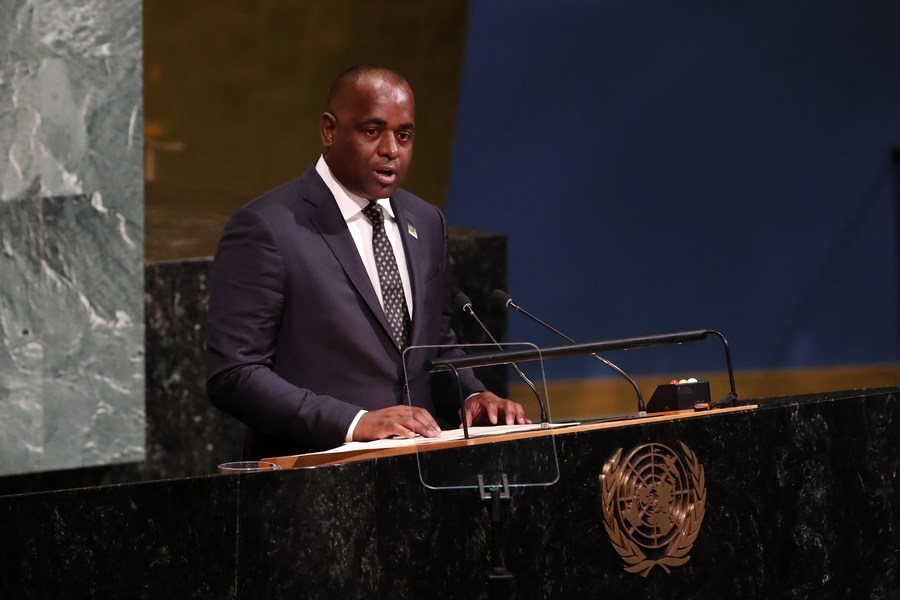 Dominican Prime Minister Roosevelt Skerrit addresses the General Debate of the 72nd session of the United Nations General Assembly at the UN headquarters in New York, Sept. 23, 2017. (Photo: Xinhua)