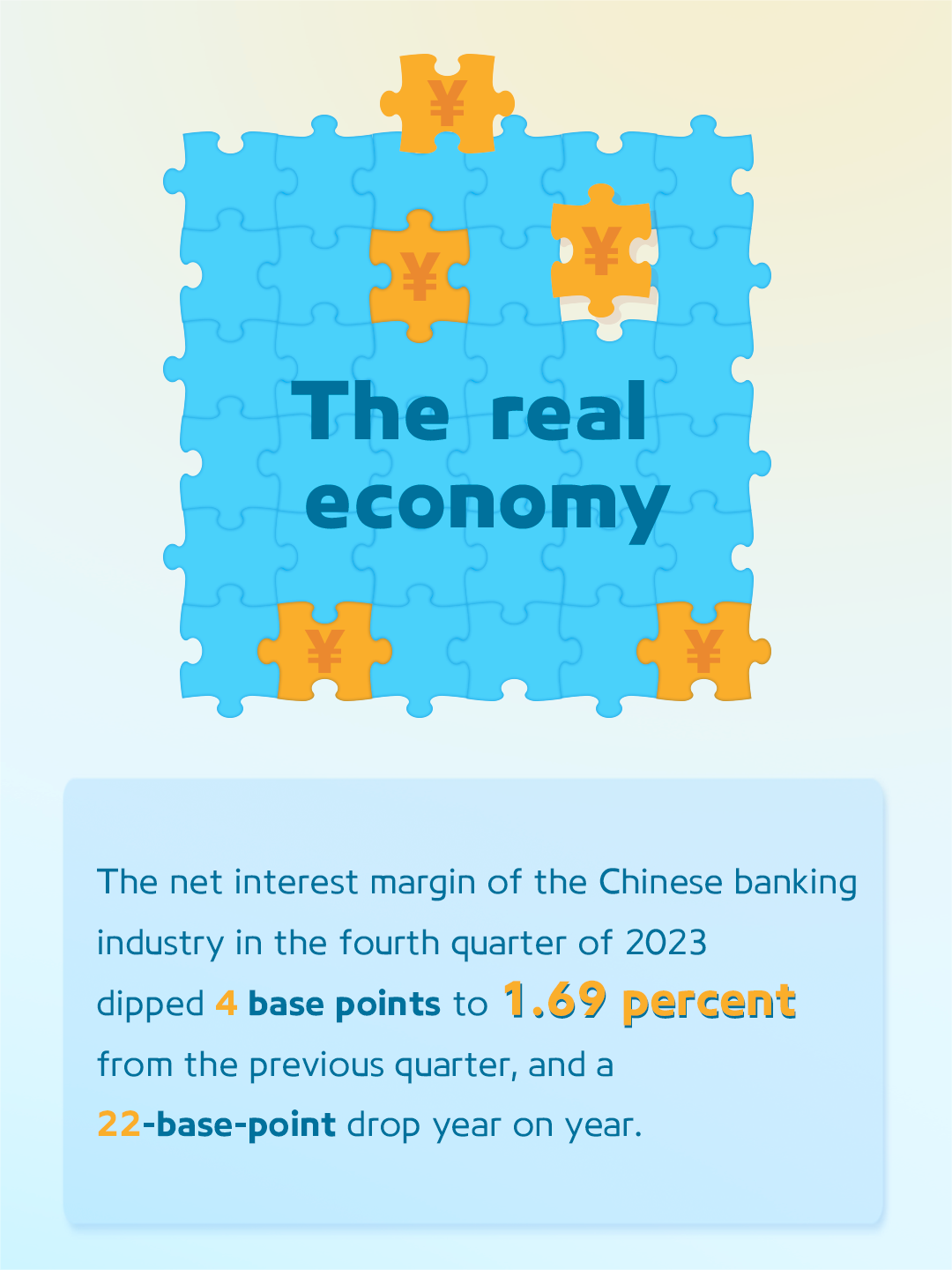 Relevant data has fully proven this too. Regulatory indicators released by the National Financial Regulatory Administration show that the NIM of Chinese banking industries in the fourth quarter of 2023 dipped 4 base points to 1.69 percent from the previous quarter, and a 22-base-point drop year on year. Influenced by multiple factors, such as NIM and intermediate business revenue, commercial banks' net profit rose 3.2 percent year on year, with a growth rate 2.2 percent lower than that in 2022. In contrast to this, the weighted average interest rate on new corporate loans in December stood at 3.75 percent, 0.22 percent lower year on year, breaking record-lows and lowering companies' financing costs.