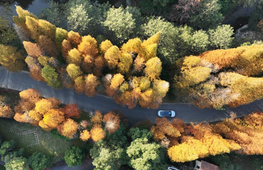 This aerial photo taken on Nov. 20, 2023 shows a view of Meiling national forest park in Nanchang, capital of east China's Jiangxi Province. (Photo: Xinhua)