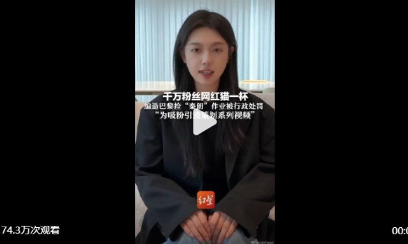 ThurmanMaoyibei, the 29-year-old female internet influencer surnamed Xu, is from Hangzhou, East China's Zhejiang Province, and has more than 10 million followers. On February 16, she posted videos related to "finding a first-grade student named Qin Lang's winter vacation homework in Paris" on social media platforms, quickly attracting widespread attention online.