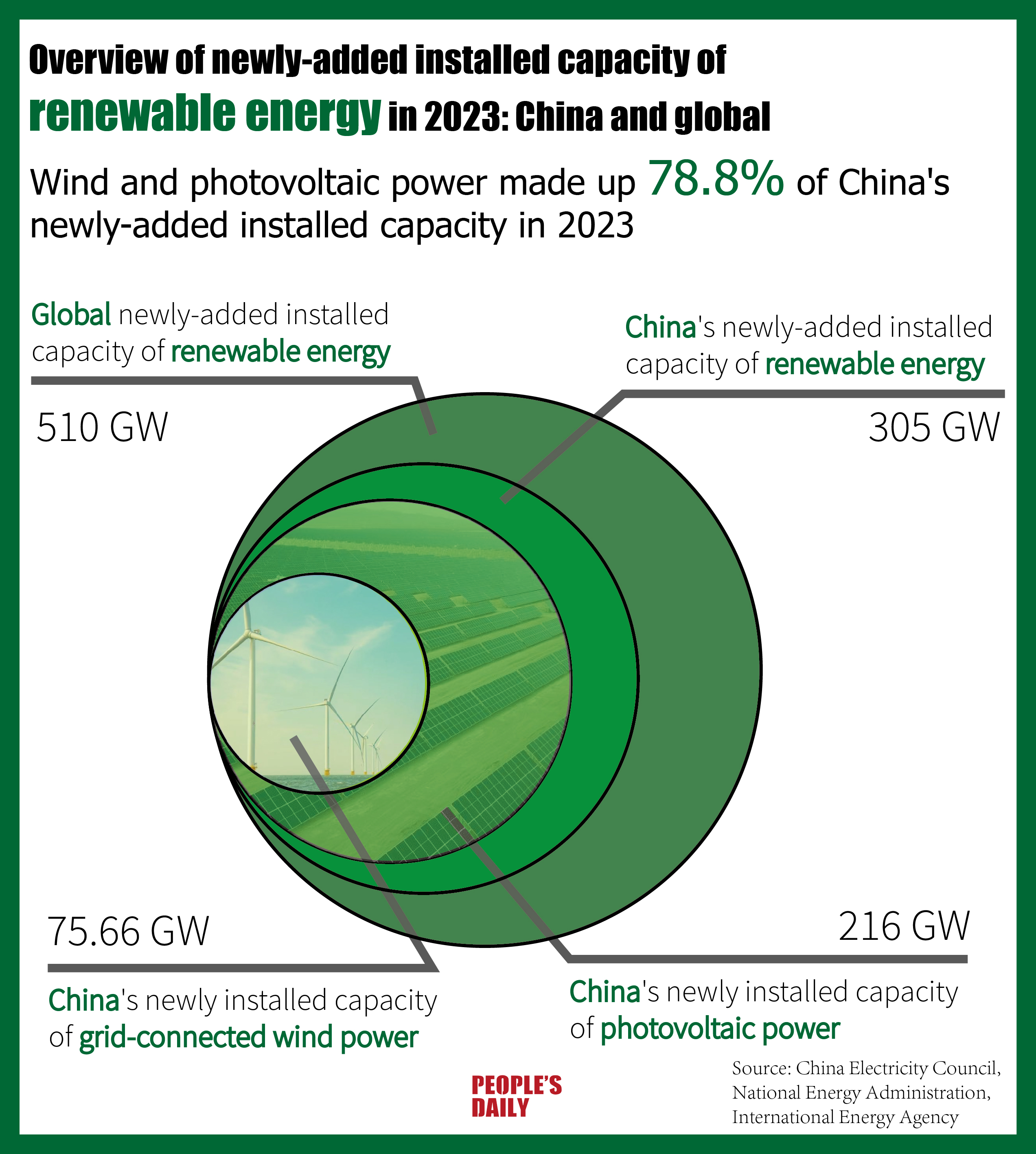 In 2023, China was the primary driving force behind the world's rapid renewable power generation capacity expansion, which grew by 50 percent to 510 gigawatts. It is worth mentioning that wind and photovoltaic power accounted for 78.8 percent of China's total newly added installed capacity in 2023.