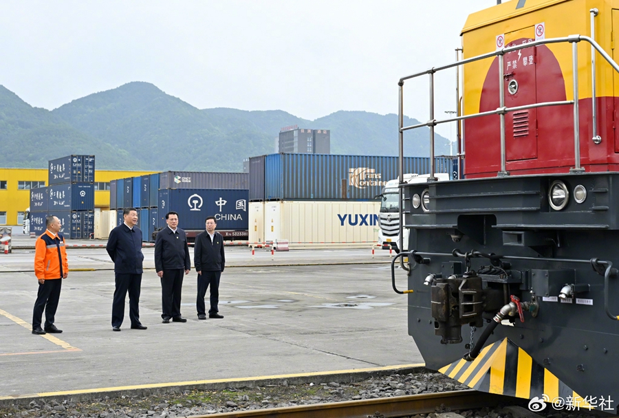 During the inspection, Xi visited an international logistics hub park, a community in Jiulongpo District, and a digital urban operation and governance center.