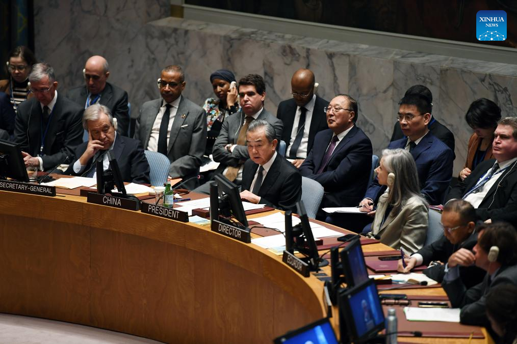 As the rotating president of the United Nations Security Council for November, China holds a Security Council high-level meeting on the Palestinian-Israeli issue here on Nov. 29, 2023. Chinese Foreign Minister Wang Yi, also a member of the Political Bureau of the Communist Party of China Central Committee, chairs the meeting. (File photo: Xinhua)
