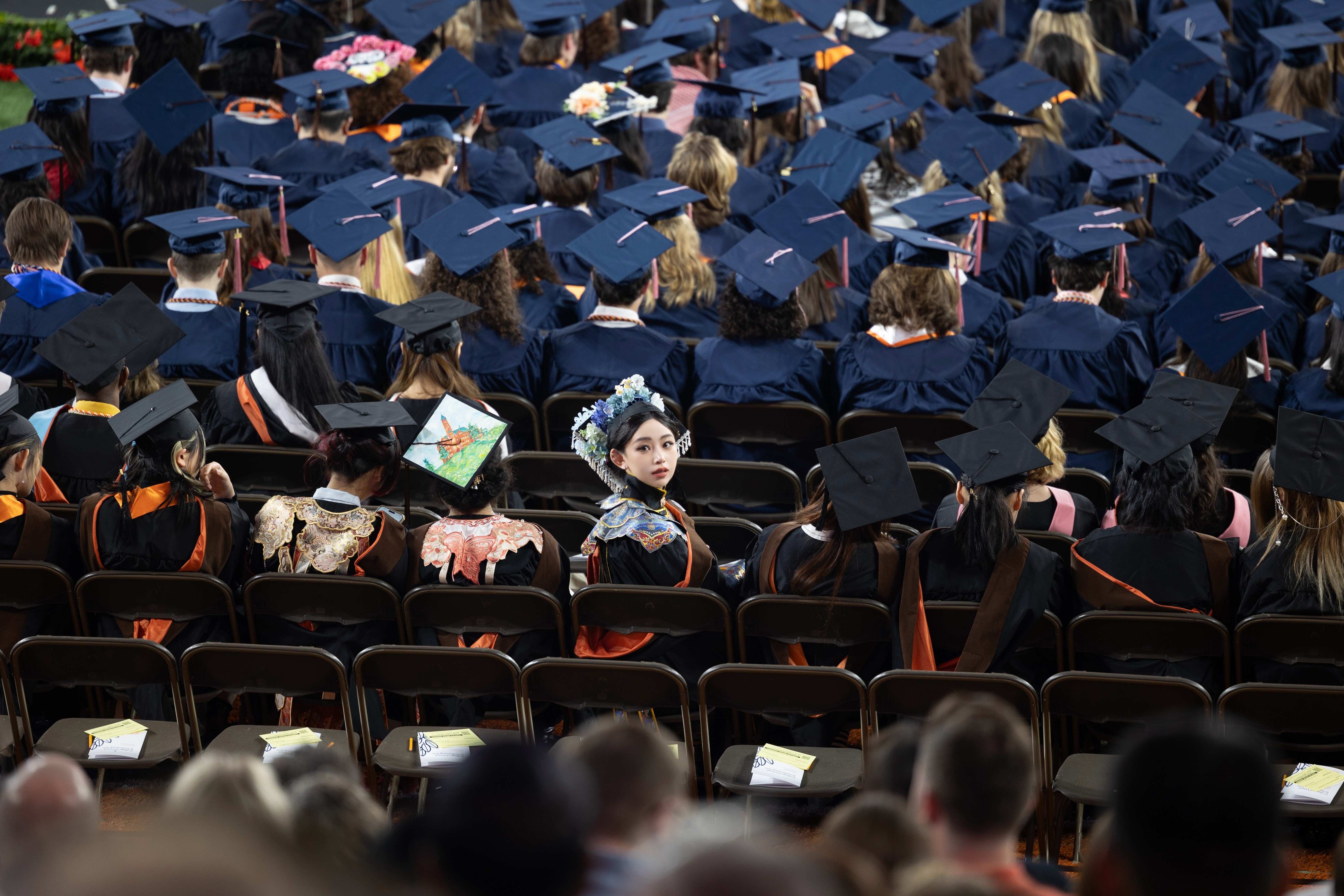 Syracuse University student Tang Fan attends her graduation ceremony wearing traditional Chinese Hanfu clothing. (Photo provided to People's Daily)