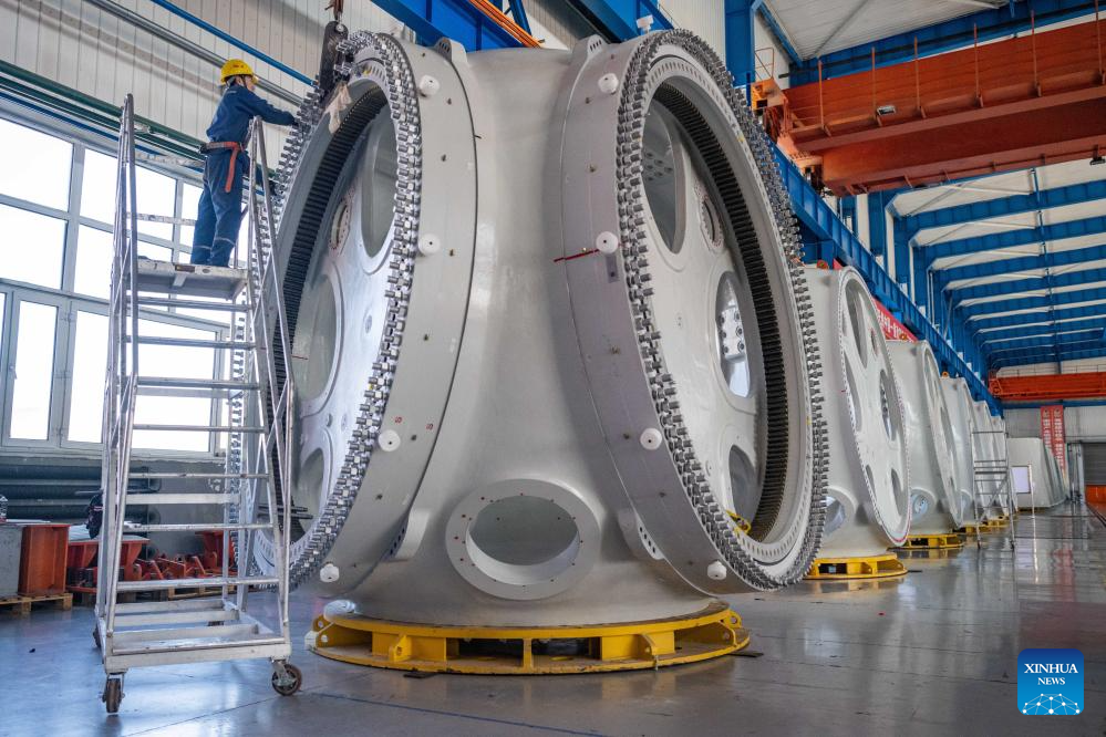 A staff member works at a workshop of China First Heavy Industries (CFHI) in Qiqihar, northeast China's Heilongjiang Province, April 28, 2024. As a leading enterprise in equipment manufacturing in China, CFHI has made efforts to adopt green technologies, integrate the new energy equipment manufacturing into its main business, and form the complete industrial chain synchronously, improving manufacturing capability of wind turbines in Qiqihar and surrounding areas. (Photo: Xinhua)