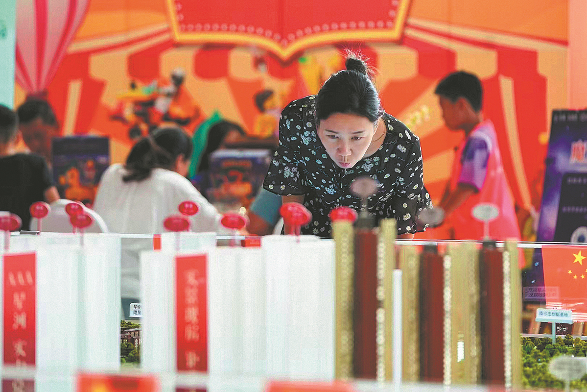 A potential homebuyer in Guangzhou, Guangdong province, looks at a property model during the just-concluded National Day holiday. (Photo: China Daily)