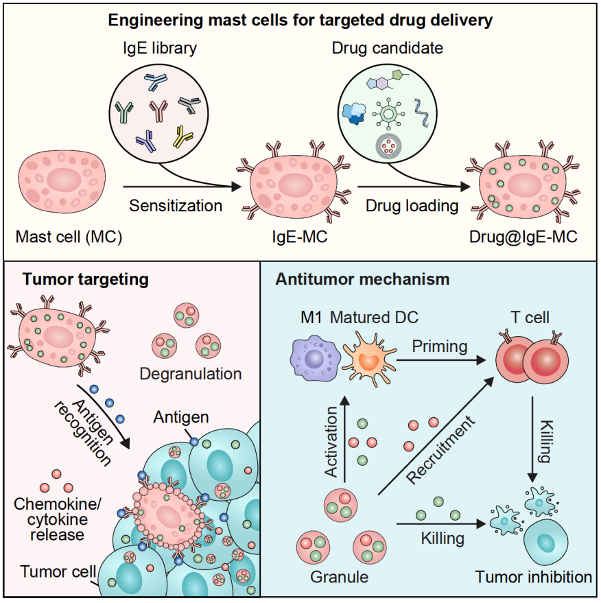 Their study, titled "Sensitized Mast Cells for Targeted Drug Delivery and Augmented Cancer Immunotherapy," was published in Cell on December 9. The research was led by Professors Zhen Gu and Jicheng Yu from the School of Pharmacy at Zhejiang University, together with Professor Fujian Liu from the First Hospital of China Medical University. Dr. Yan Xu of Zhejiang University is the study's first author.