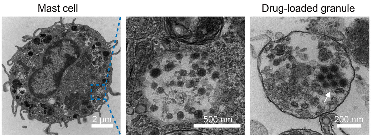 The researchers also discovered that mast cells can act as living carriers for oncolytic viruses—viruses that selectively infect and kill cancer cells. By hiding these viruses within mast cell vesicles (granules), the team protected them from destruction in the bloodstream. Once the mast cells reached the tumor and became activated, the viruses were released from the cells.
