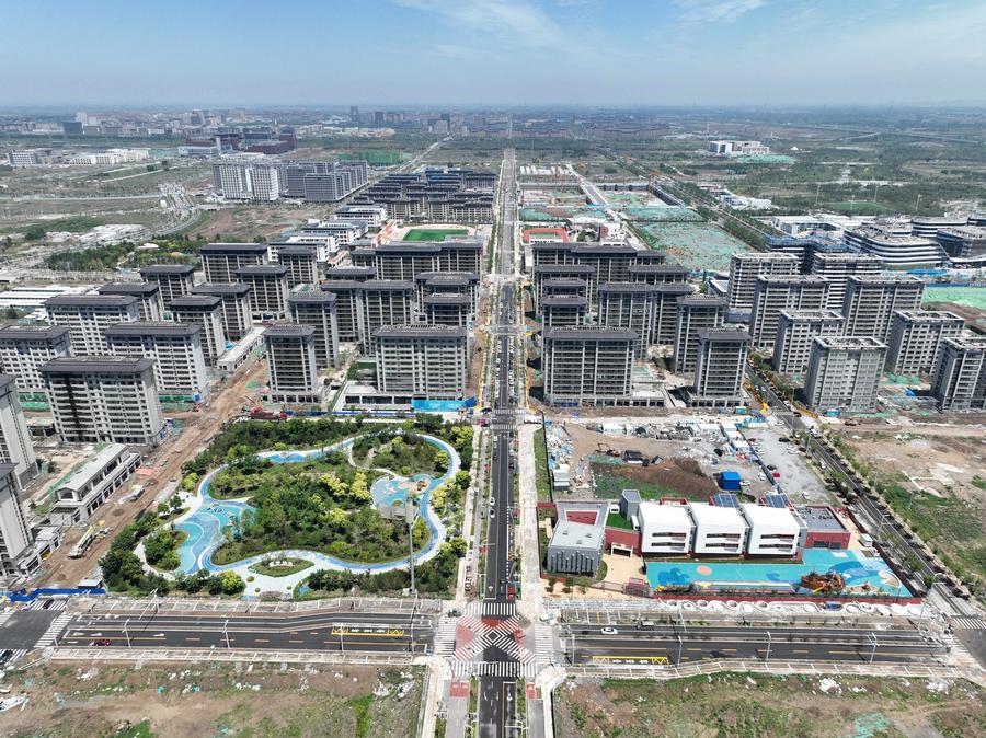 This aerial photo taken on July 4, 2023 shows the construction site of a residential housing project in the start-up area in Xiong'an New Area, north China's Hebei Province. (File photo: Xinhua)