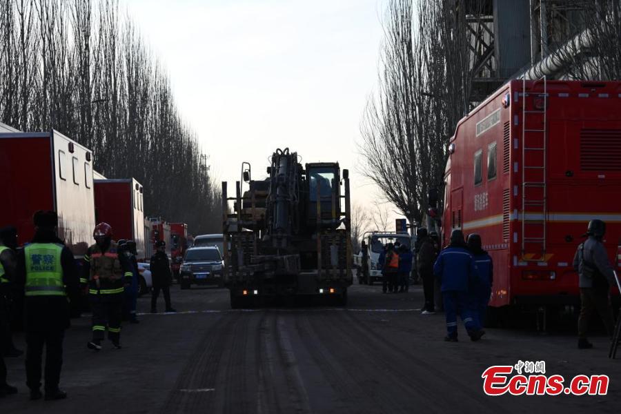 Firefighters, accompanied by rescue dogs, carry out rescue operations at the site of an explosion at a plate plant of Baogang?United?Steel in Baotou, north China’s Inner Mongolia Autonomous Region, Jan. 19, 2026. (Photo: China News Service/Liu Wenhua)