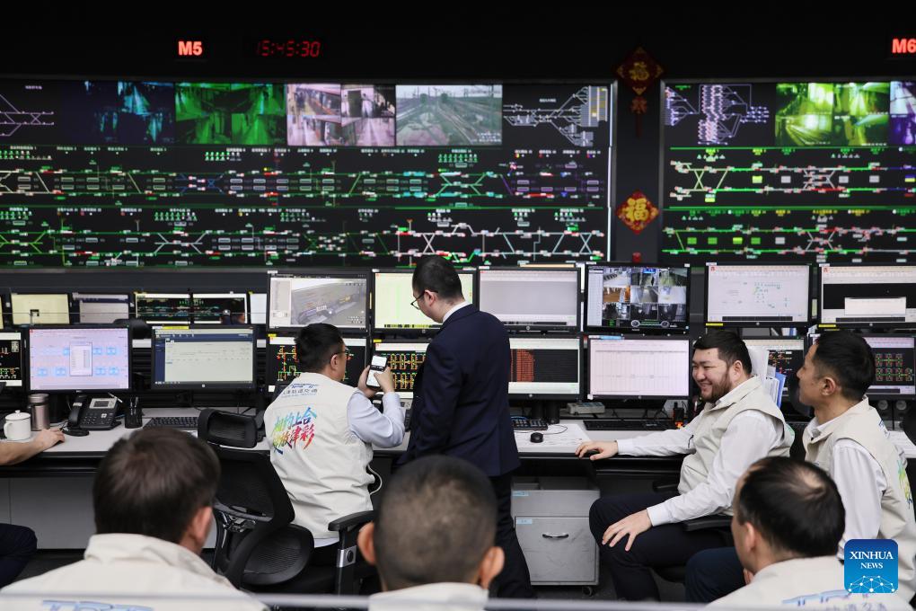 Trainees from Kazakhstan attend a lecture at a dispatching center of Tianjin Rail Transit in north China's Tianjin Municipality, Jan. 23, 2026. Some 20 specialist trainees from Kazakhstan recently attended a hands-on training session for operations in light-rail dispatching hosted by the Tianjin Rail Transit.