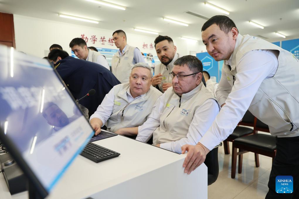 Trainees from Kazakhstan are pictured during a hands-on session at a training center of Tianjin Rail Transit in north China's Tianjin Municipality, Jan. 23, 2026. Some 20 specialist trainees from Kazakhstan recently attended a hands-on training session for operations in light-rail dispatching hosted by the Tianjin Rail Transit.