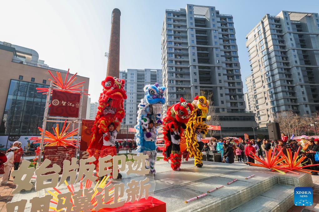 This photo taken on Jan. 24, 2026 shows a lion dance performance during a fair featuring intangible cultural heritage and Chinese New Year goods in Hangzhou, east China's Zhejiang Province. Kicking off in Hangzhou on Saturday, the event blends traditional festivities with modern trends, offering visitors an immersive experience of cultural crafts, holiday shopping, and folk performances. (Xinhua/Xu Yu)