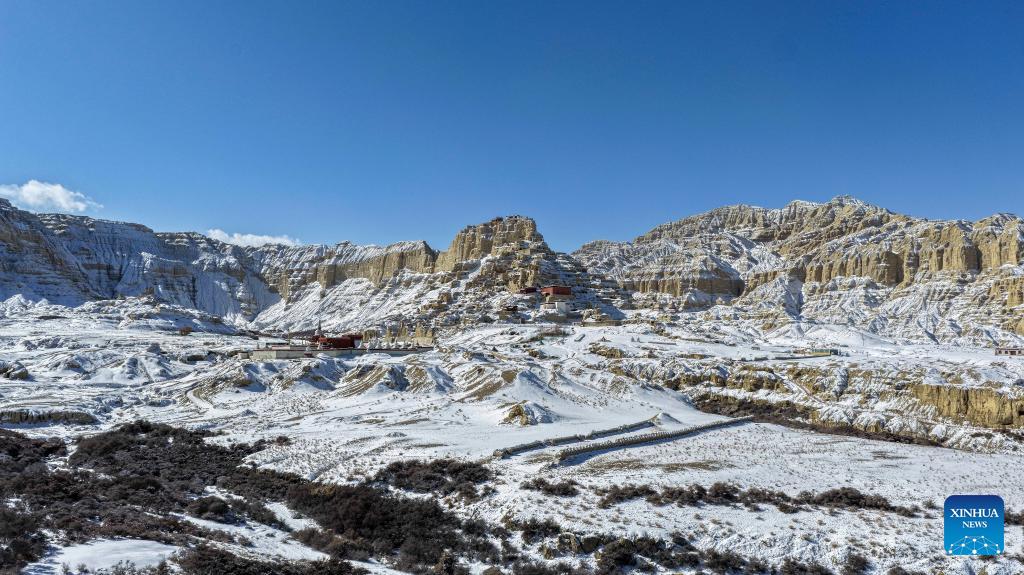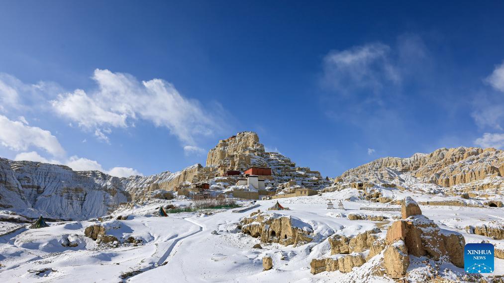 This aerial drone photo shows the ruins of the Guge Kingdom in Zanda county of Ngari prefecture, southwest China's Xizang Autonomous Region, Jan. 24, 2026. (Photo by Tinzen Tseten/Xinhua)