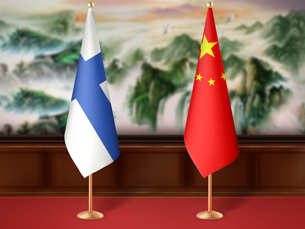 The Chinese and Finnish national flags. (Photo: VCG)
