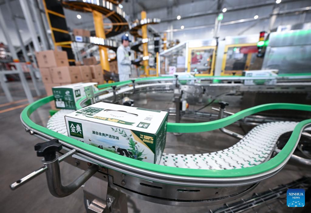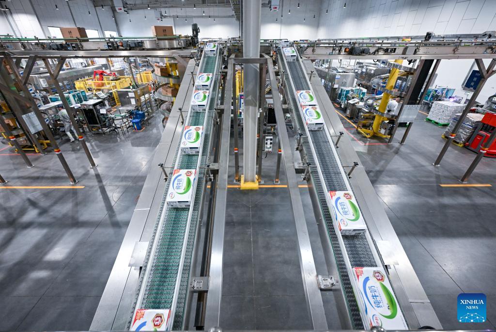 An automatic production line is pictured at the packaging workshop of Yili in Wuzhong, northwest China's Ningxia Hui Autonomous Region, Jan. 27, 2026. In recent years, Wuzhong City has significantly enhanced the scale, standardization and intensification of its dairy industry. The Jinji industrial park in Wuzhong has attracted a cluster of renowned dairy enterprises, with a daily capacity of processing fresh raw milk reaching 6,400 tons, accounting for over 53 percent of the total processing capacity in Ningxia. (Xinhua/Feng Kaihua)