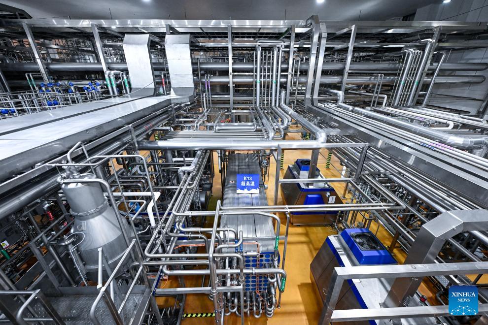 This photo taken on Jan. 27, 2026 shows an ultra-high temperature instant sterilization production line at a Yili workshop in Wuzhong, northwest China's Ningxia Hui Autonomous Region. In recent years, Wuzhong City has significantly enhanced the scale, standardization and intensification of its dairy industry. The Jinji industrial park in Wuzhong has attracted a cluster of renowned dairy enterprises, with a daily capacity of processing fresh raw milk reaching 6,400 tons, accounting for over 53 percent of the total processing capacity in Ningxia. (Xinhua/Feng Kaihua)