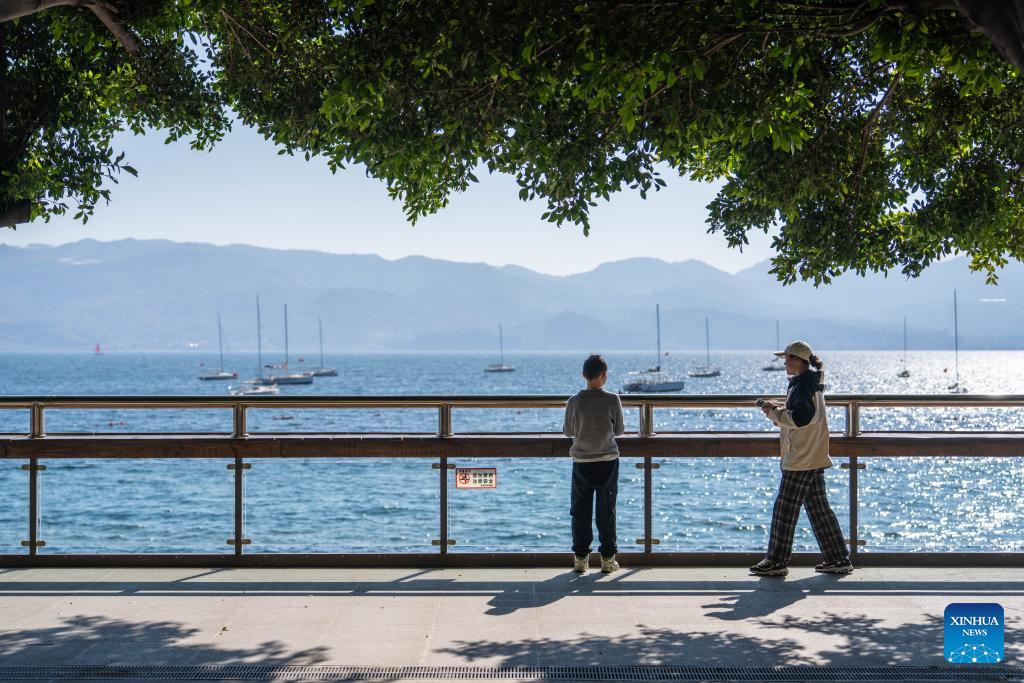 Tourists visit the Fuxian Lake in Yuxi City, southwest China's Yunnan Province, Jan. 27, 2026. (Xinhua/Gao Yongwei)