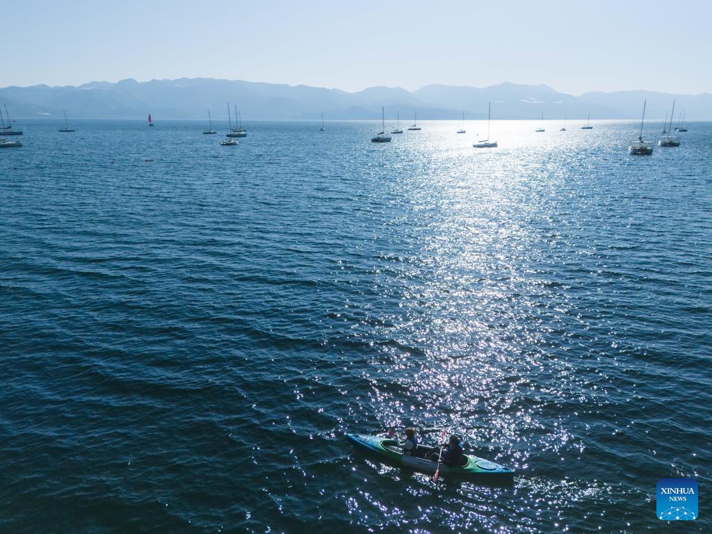 Tourists kayak on the Fuxian Lake in Yuxi City, southwest China's Yunnan Province, Jan. 27, 2026. (Xinhua/Gao Yongwei)