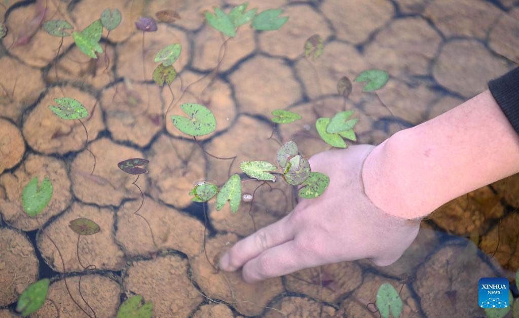 A staff member shows the seeds of a water lily at the Yunxi Botanical Garden in Guangzhou, south China's Guangdong Province, Jan. 27, 2026. Located in the west of the Baiyun Mountain scenic area, the Yunxi Botanical Garden has opened up a display area for water lilies of over 20,000 square meters, where boasts of a variety of water lily species and an introduction, caring and developing team for the plant. (Xinhua/Deng Hua)