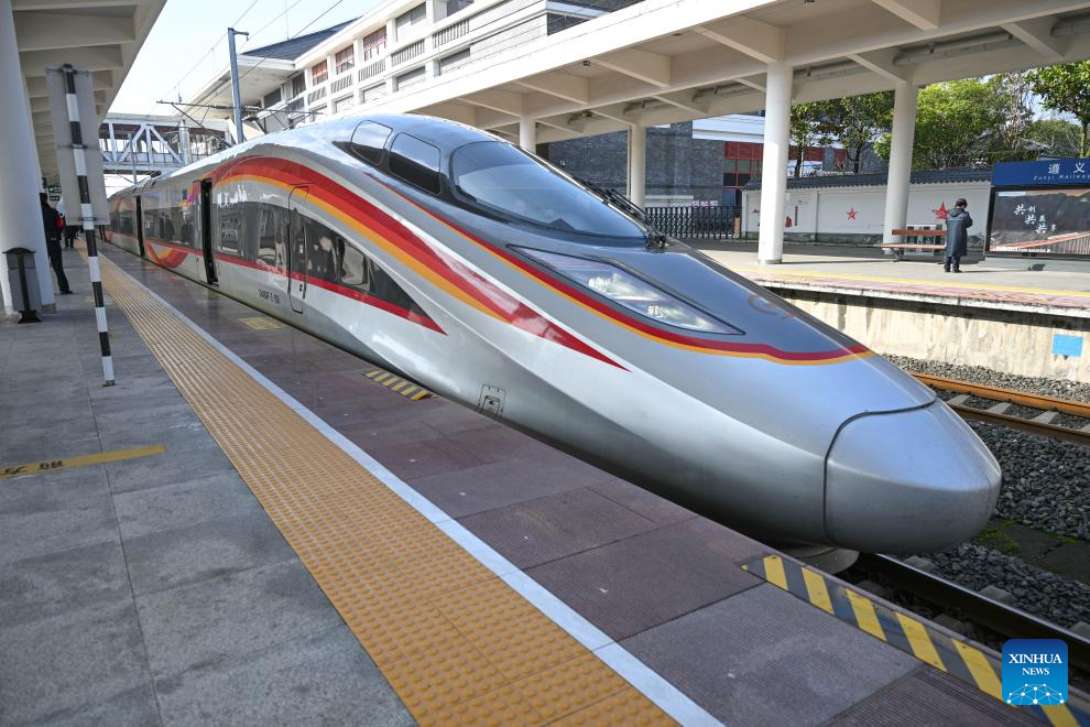 The high speed rail G3360 from Zunyi of southwest China's Guizhou Province to Yan'an of northwest China's Shaanxi Province is pictured at Zunyi Railway Station in southwest China's Guizhou Province, Jan. 26, 2026. (Photo: Xinhua)