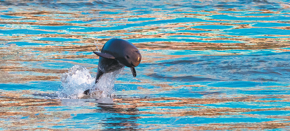 A Yangtze finless porpoise leaps out of the water in Yichang, Hubei province in 2020. (Photo: China Daily)