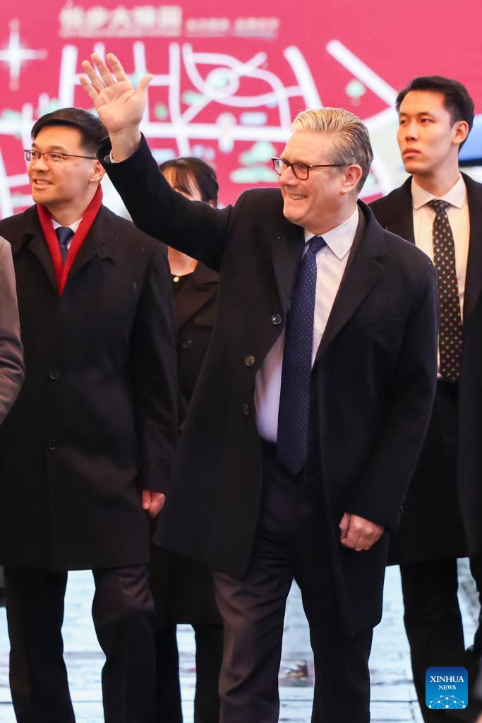 British Prime Minister Keir Starmer waves during a visit to Yuyuan Garden in Shanghai, east China, Jan. 30, 2026. (Photo: Xinhua)