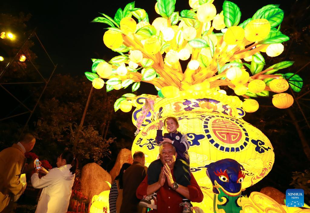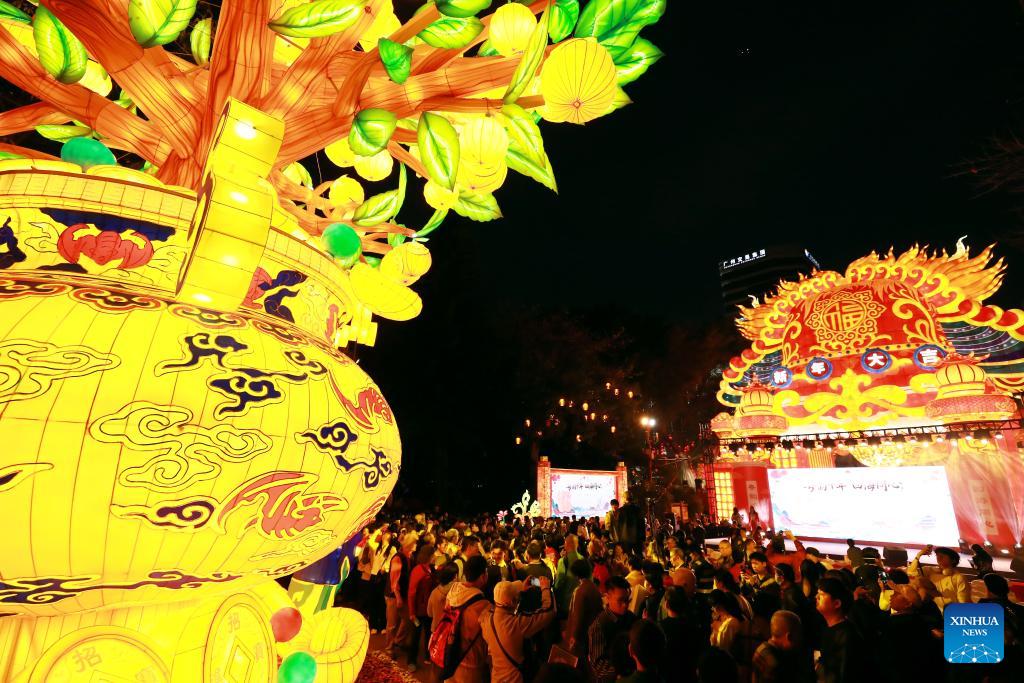 People visit the 2026 Guangzhou Spring Festival lantern show in Guangzhou, south China's Guangdong Province, Jan. 30, 2026. The event kicked off at the Yuexiu Park in Guangzhou on Friday, featuring 85 groups of distinctive lantern displays scattered throughout the ten major tourist areas of the entire park, and will last until March, 8. (Xinhua/Wang Ruiping)