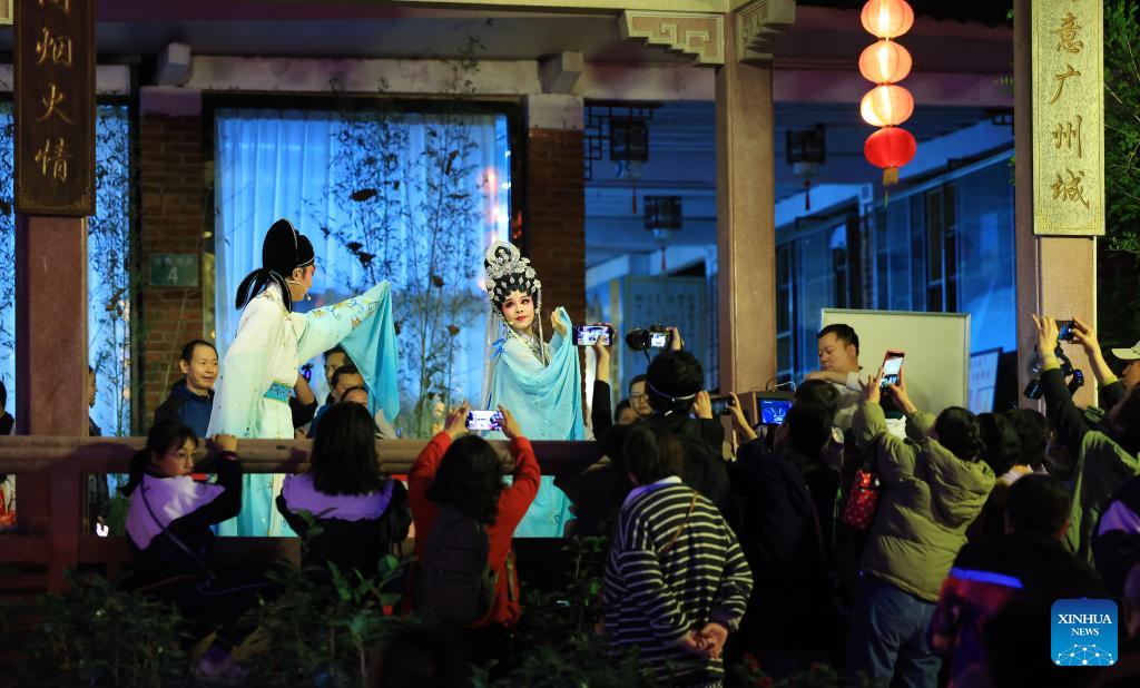 People watch a Cantonese opera performance during the 2026 Guangzhou Spring Festival lantern show in Guangzhou, south China's Guangdong Province, Jan. 30, 2026. The event kicked off at the Yuexiu Park in Guangzhou on Friday, featuring 85 groups of distinctive lantern displays scattered throughout the ten major tourist areas of the entire park, and will last until March, 8. (Xinhua/Wang Ruiping)