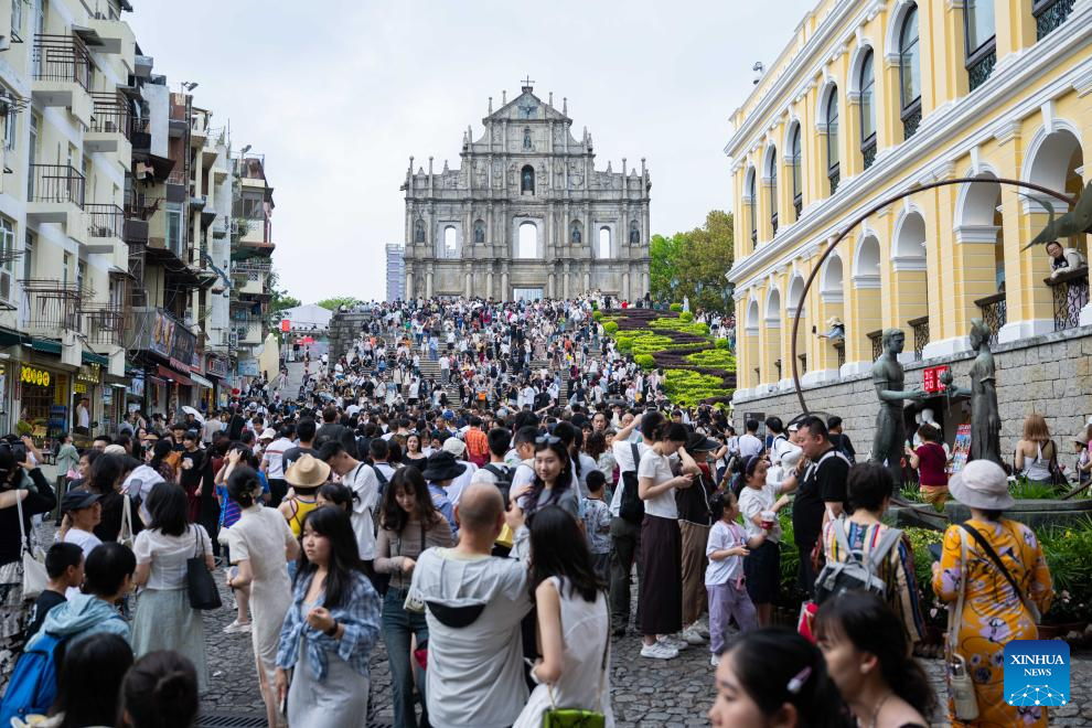 Tourists are pictured near the Ruins of St. Paul's in south China's Macao, May 3, 2025. (Photo: Xinhua)