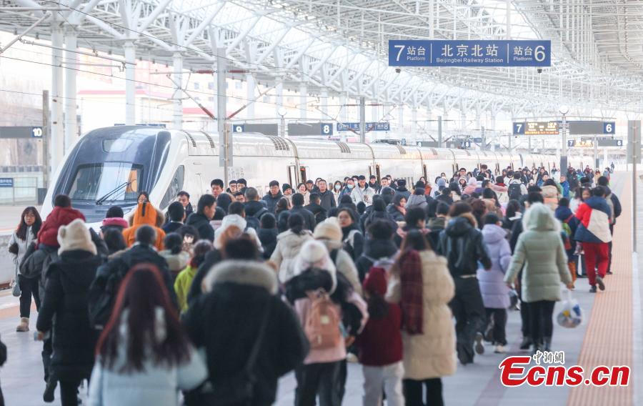 Passengers prepare to travel at Beijing North Railway Station on Feb. 1, ahead of the 2026 Spring Festival travel rush, which runs from Feb. 2 to March 13 and is expected to see a record 9.5 billion inter-regional trips nationwide. (Photo: China News Service/Jia Tianyong)