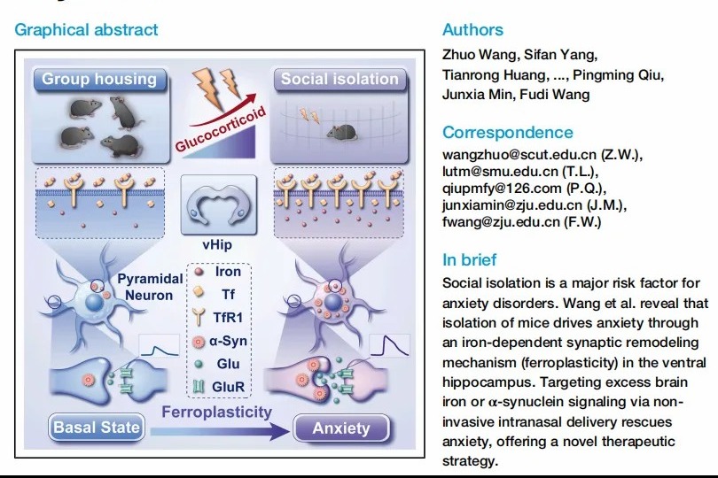 Using a mouse model designed to mimic long-term solitary living, the team found that isolated mice developed abnormally elevated iron levels in the ventral hippocampus, a part of the brain associated with emotional responses. According to Wang, excess iron appeared to activate a protein called α-synuclein, triggering unusually high neuronal activity linked to anxiety.