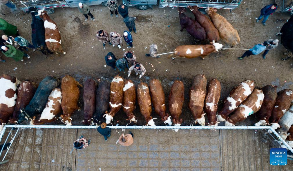 In recent years, the market has become one of the largest village-level livestock trading markets in the area, currently trading over 250,000 heads of beef cattle annually. (Xinhua/Yang Zhisen)